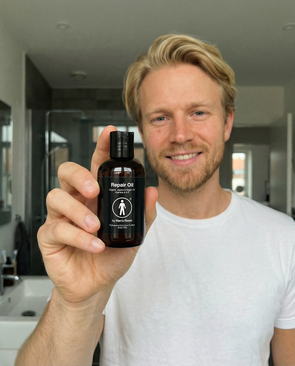 Mænds hud er udsat på grund af barbering, livsstil og vaner, og denne "ambulancespray" yder beroligende førstehjælp og fugtpleje og er let at påføre. Den kan også anvendes som "bodylotion" på behårede områder. Samtidigt reducerer Repair Spray efterfølgende cremeforbrug og sænker pH-værdien efter vask.