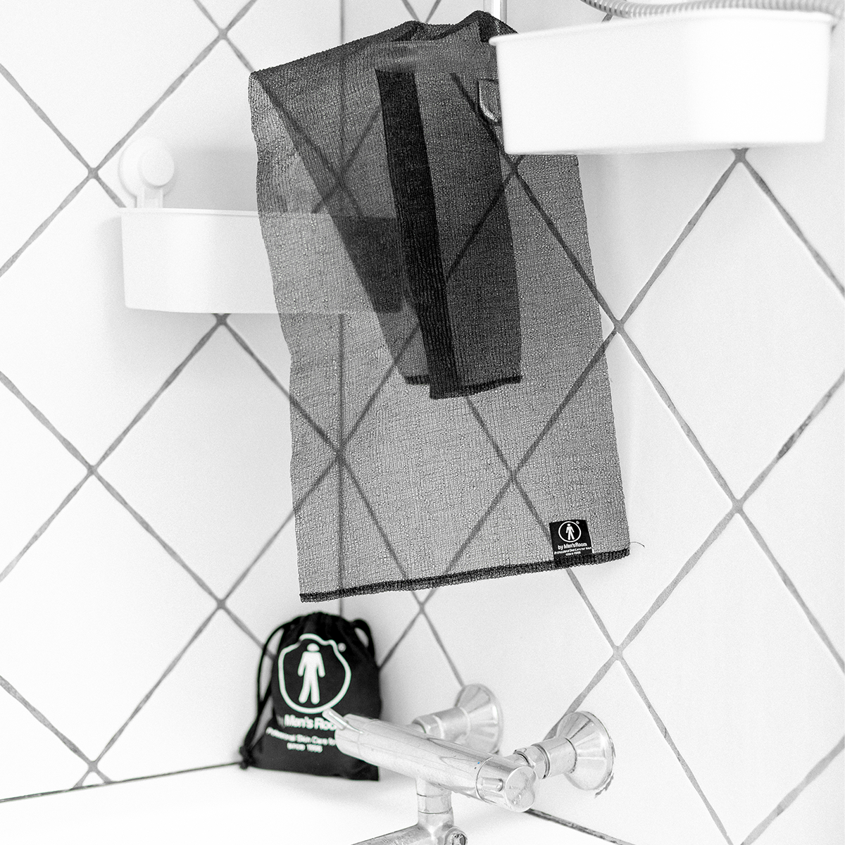 Rygbånd til vask og eksfoliering af ryg og krop. Afhjælper og forebygger indgroede hår. Rygbåndet er en hygiejnisk og ret nænsom måde at skrubbe ryg og hele krop på, sammen med Control Cleanser eller Body Wash. Man anvender på den måde mindre produkt og får fjernet de tørre, døde hudceller, der ellers kan nulre efter tørre perioder. Fordi rygbåndet er lavet af plast, tørrer det 100% op mellem bade, så der ingen bakterievækst kan forekomme (som ved badebørster, hampreb etc.).